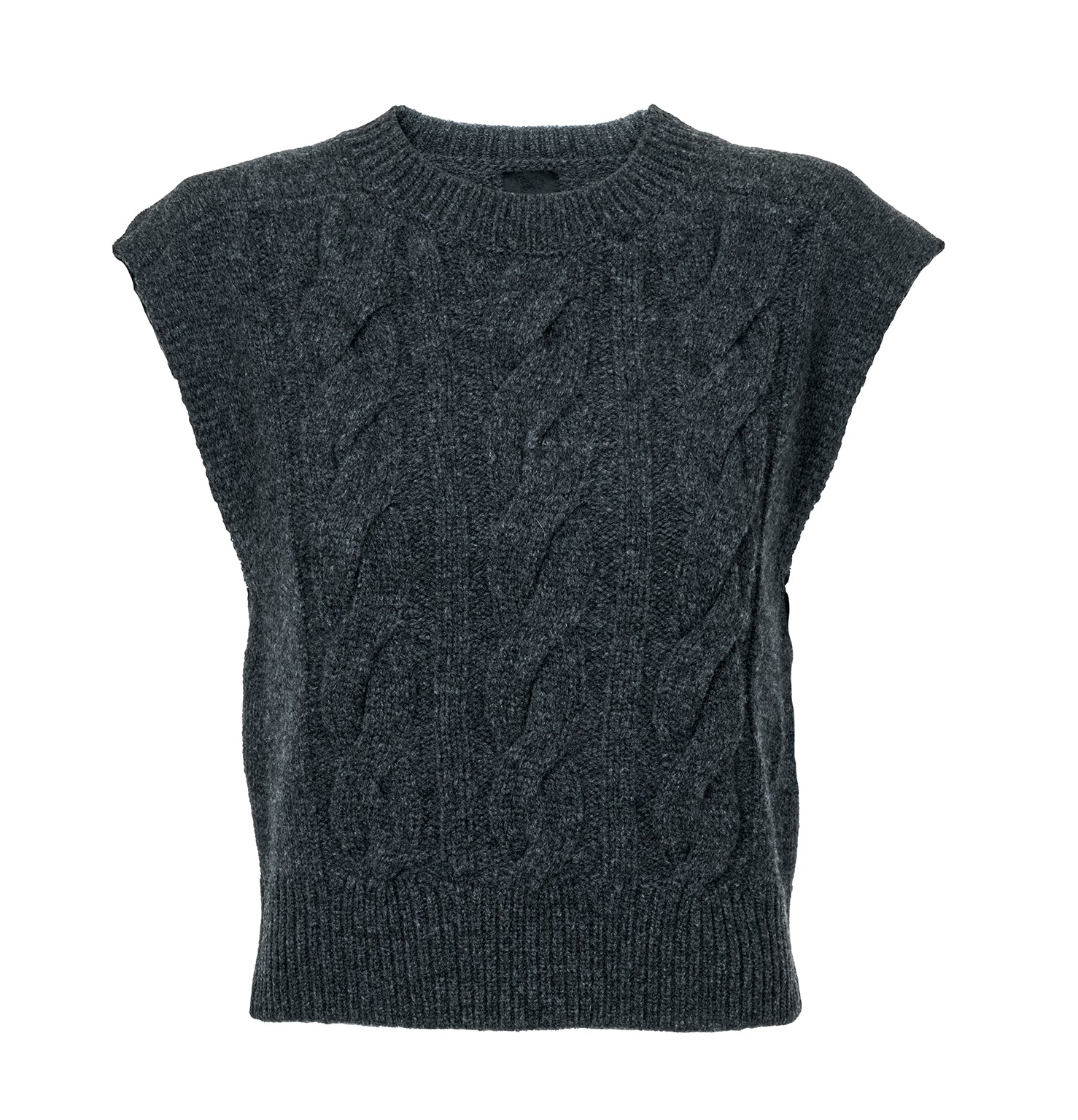 Strikket vest i kabelstrikket mønster fra Ane Mone.