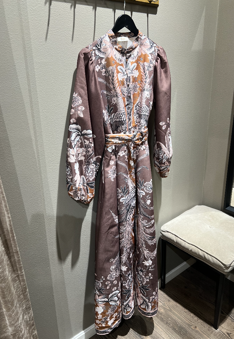 Lang kjole med knappelukking og belte i midjen. Fra From Paris With Love.