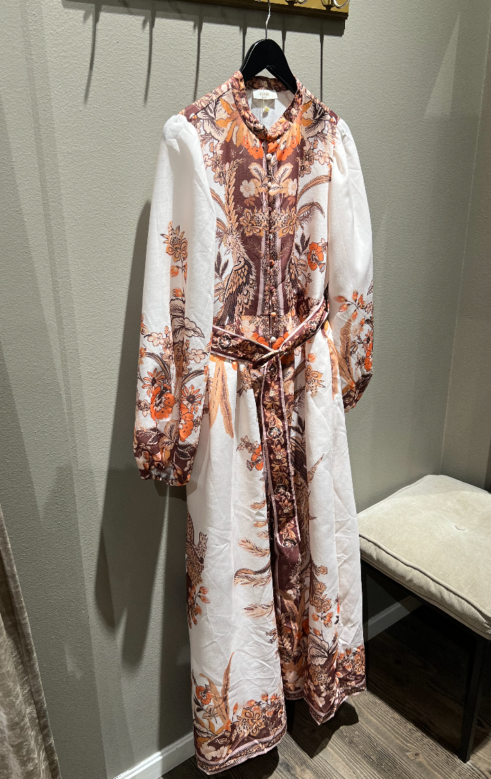 Lang kjole med knappelukking og belte i midjen. Fra From Paris With Love.
