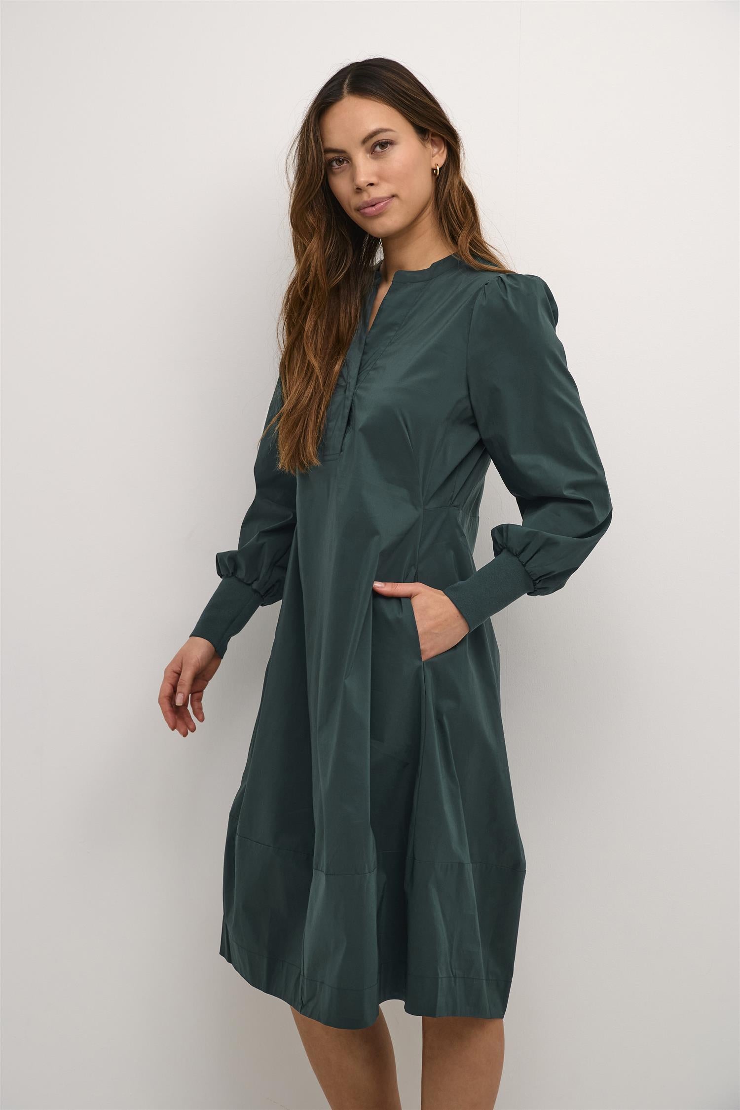Kjole med lange ermer og innsving i midjen, fra Culture.