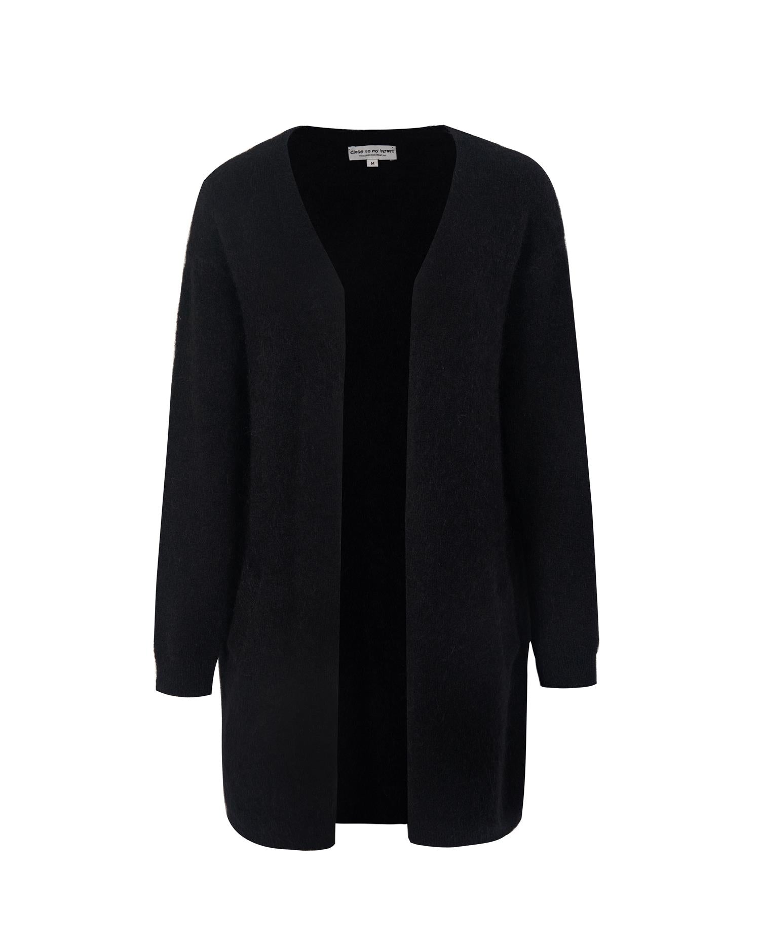 Cardigan med god lengde til midt på låret, gode lommer og i myk kid mohair. Håndlaget i Nepal.