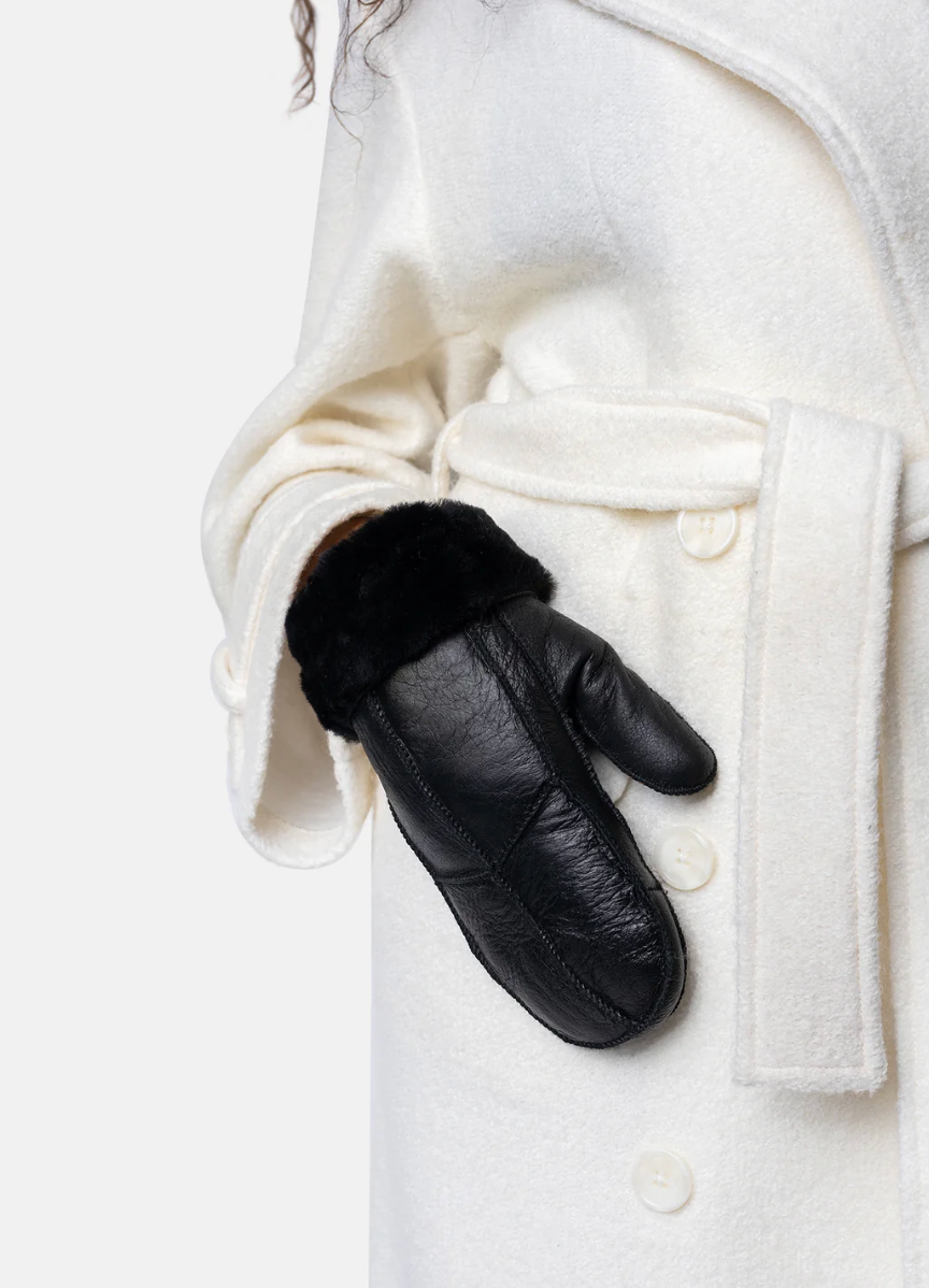 Vottene er designet i det mykeste shearling-skinnet. Shearling er skinnet til en nyklipt sau eller lam som har blitt garvet og behandlet, men ullen er fortsatt på.