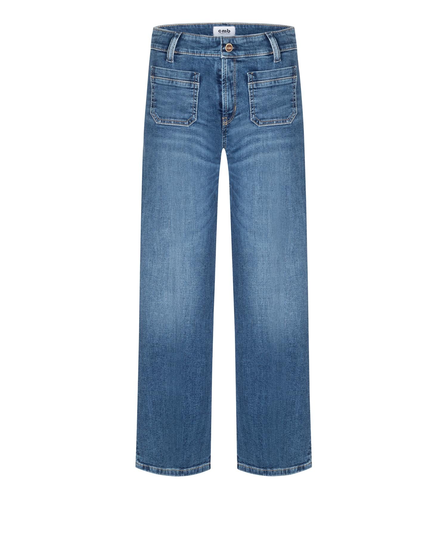 Jeans med rette kortere ben. Fra Cambio. Buksen er middels høy i midjen og har to lommer foran, og bak.