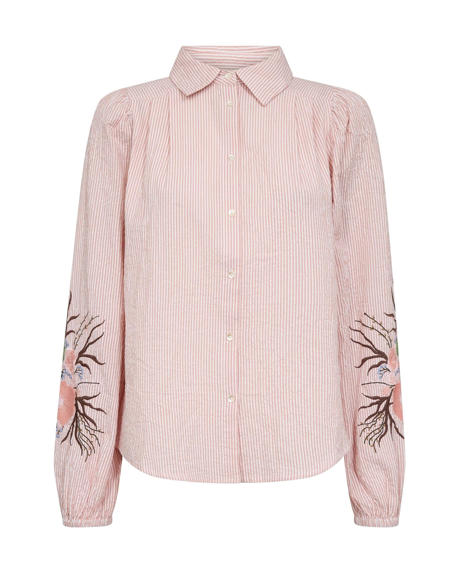Bluse med striper og broderi på ermene. Fra Mos Mosh.