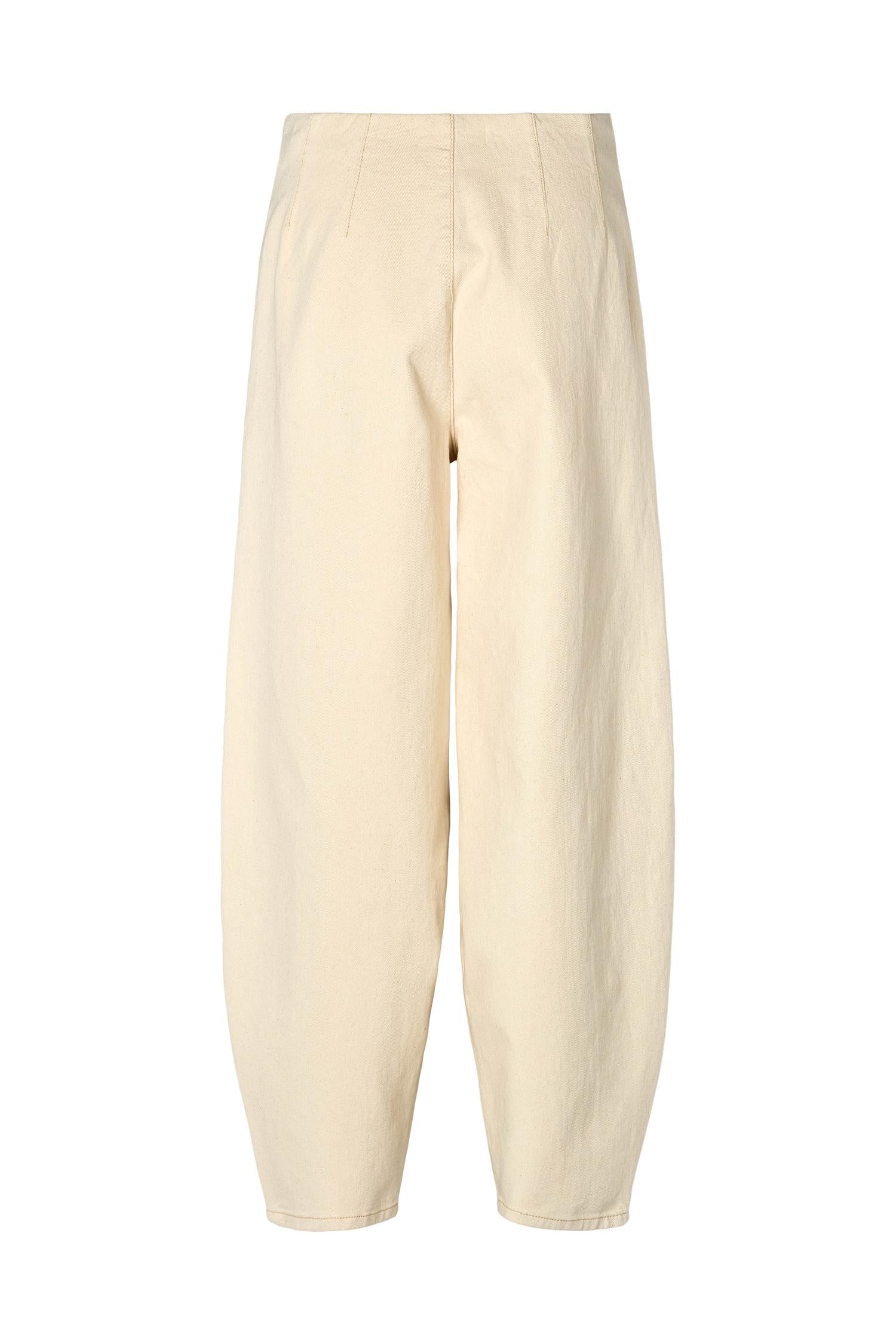 Holana-buksene er avslappede bukser med en mykt avrundet silhuett og høy midje. De har et minimalistisk design med vertikale sømmer som skaper et rent, skandinavisk uttrykk.