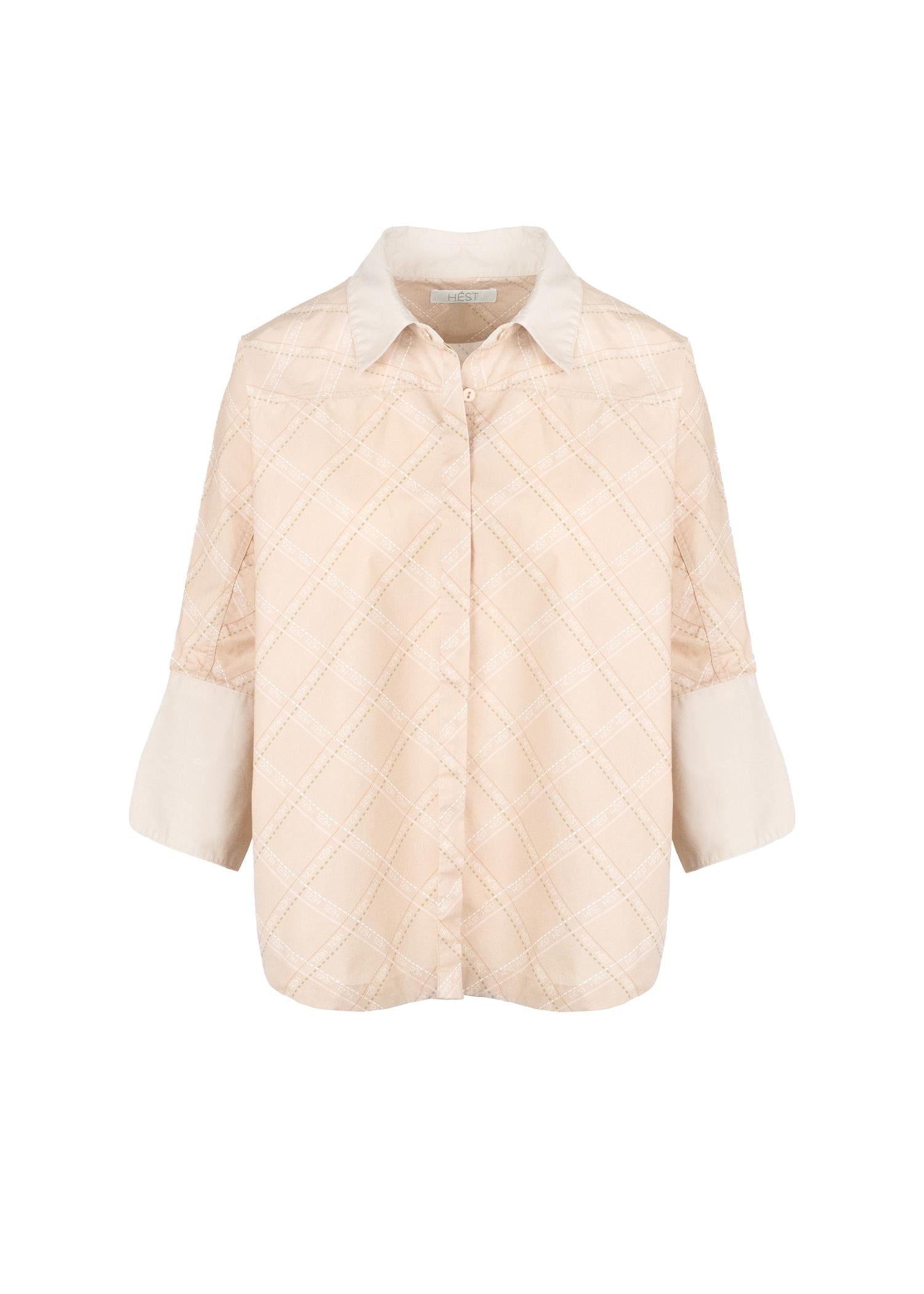 Skjorte fra HÉST. Denne skjorten er laget av 100 % bomull, og tilbyr både komfort og en moteriktig appell med sin vevde tekstur.