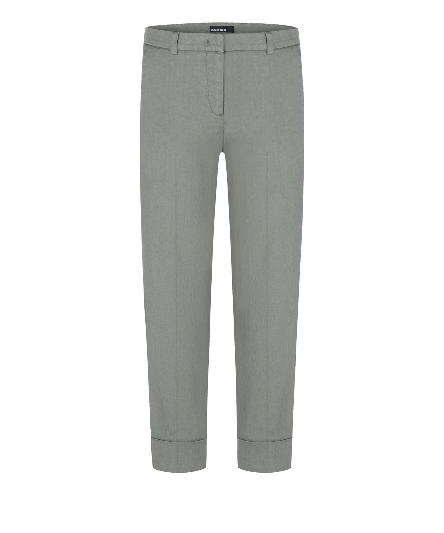 Smale bukser i lin fra Cambio. Middels høy i midjen og oppbrettet kant nederst på buksebenet.