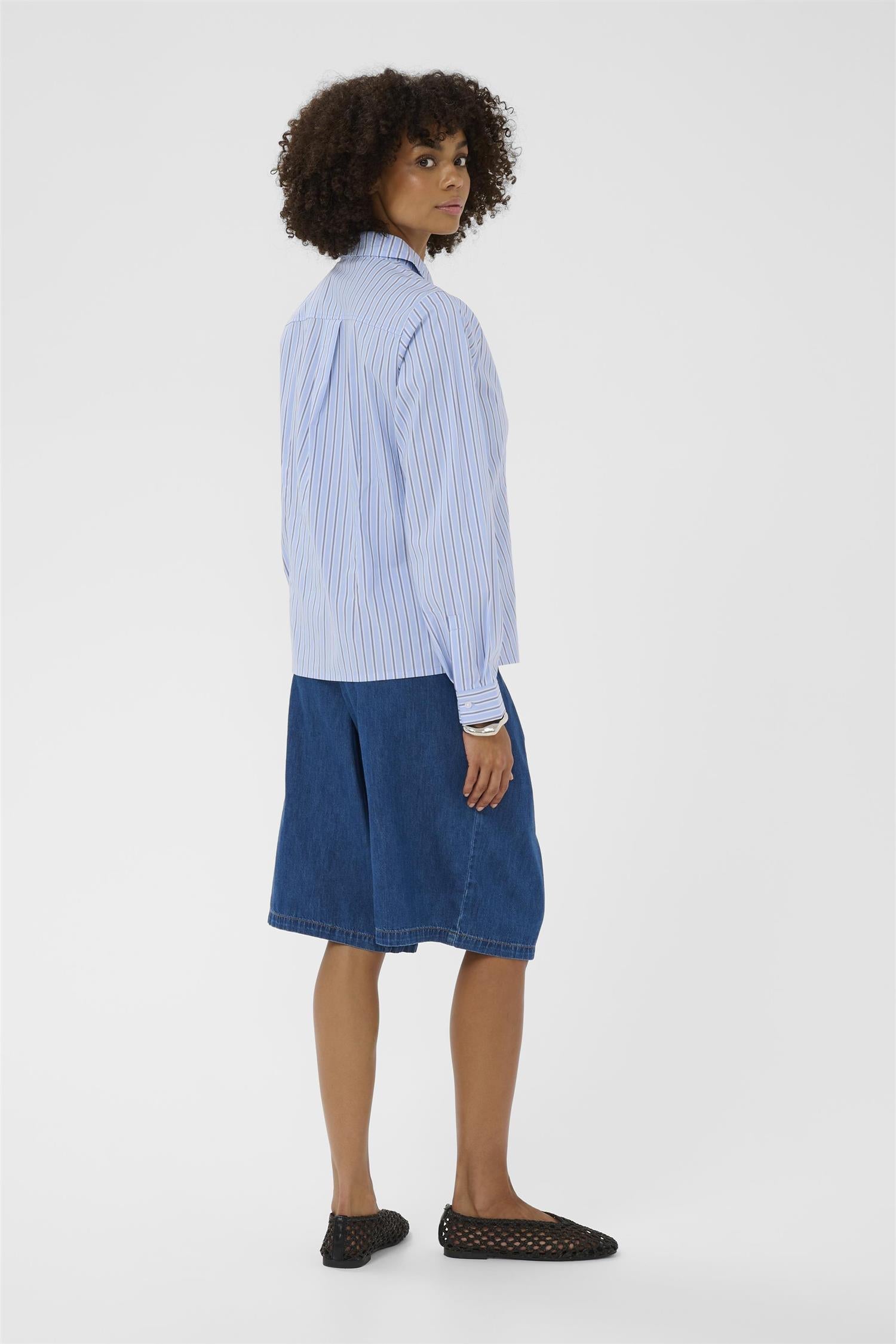Stripete skjorte med blomst på siden. Fra Culture.